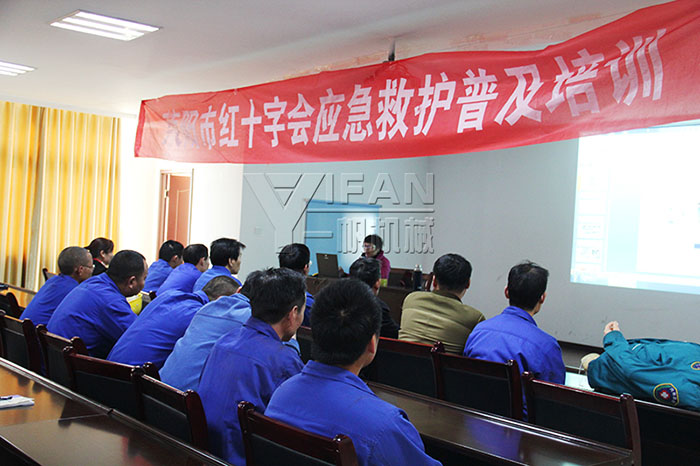 2014年11月8日上午9:10,滎陽市紅十字會(huì)應(yīng)急救護(hù)普及培訓(xùn)在一帆機(jī)械四樓會(huì)議室進(jìn)行,由滎陽市人民醫(yī)院急診科護(hù)士長趙建萍進(jìn)行講授。培訓(xùn)內(nèi)容主要包括應(yīng)急救護(hù)新概念、心肺復(fù)蘇、擠壓傷的處理等。