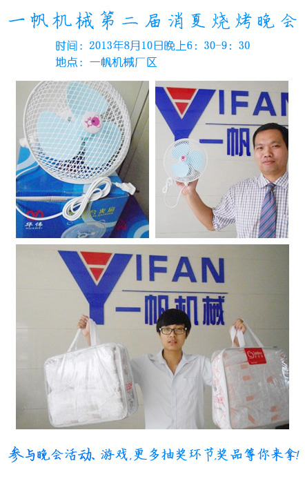 鄭州2013年的夏天,一直持續(xù)高溫天氣。鄭州一帆機(jī)械設(shè)備有限公司為了給員工放松心情,抗擊這炎炎酷署,特地在2013年8月10日晚上舉行消夏燒烤晚會。