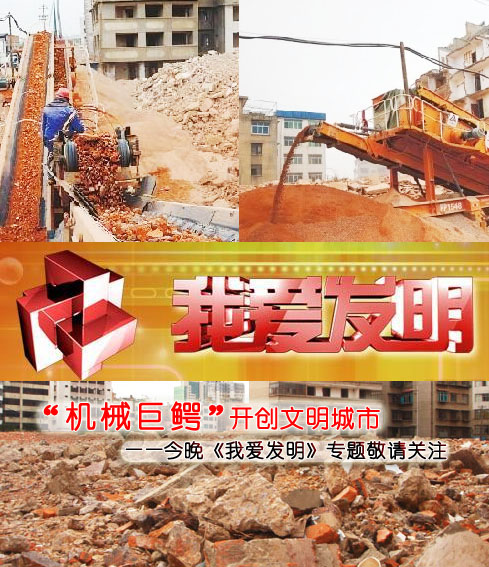今晚18:55中央電視臺(tái)10頻道《我愛發(fā)明》欄目將為大家揭開建筑垃圾處理設(shè)備——移動(dòng)破碎站如何將建筑垃圾領(lǐng)上資源化發(fā)展的道路,并為您一一解讀一種可以把建筑垃圾一口一口吃掉并吐出“黃金”的設(shè)備是如何幫您實(shí)現(xiàn)投資致富的,這種高效環(huán)保、節(jié)能快捷的建筑垃圾處理設(shè)備的神秘面紗在今晚即將被揭開,敬請(qǐng)各行各業(yè)關(guān)注。