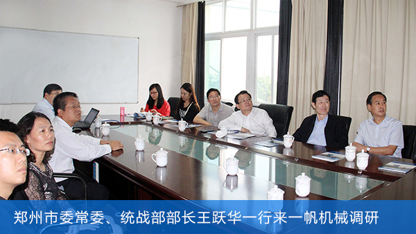 2014年9月23日,正值中國(guó)農(nóng)歷二十四節(jié)氣中的秋分之日,鄭州市委常委、統(tǒng)戰(zhàn)部部長(zhǎng)王躍華一行來到了一帆機(jī)械滎陽廠區(qū),對(duì)公司上半年的發(fā)展?fàn)顩r進(jìn)行考察調(diào)研。張總、代總等公司領(lǐng)導(dǎo)對(duì)王部長(zhǎng)一行人進(jìn)行了熱烈的歡迎。