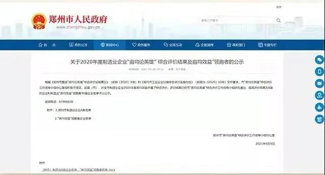 被認(rèn)定為鄭州市“制造業(yè)畝產(chǎn)論英雄”A類企業(yè);