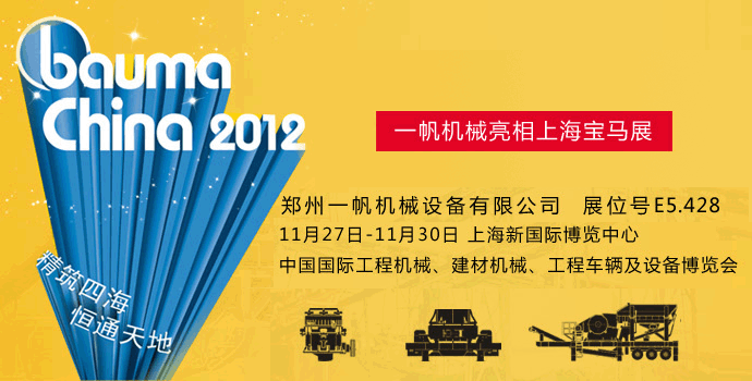 近期,國(guó)內(nèi)知名的專業(yè)移動(dòng)篩分設(shè)備研發(fā)制造商鄭州一帆機(jī)械設(shè)備有限公司,剛剛被中央電視臺(tái)《我愛(ài)發(fā)明之機(jī)械巨顎》欄目分享了公司全新建筑垃圾處理設(shè)備所做的突出貢獻(xiàn)后后,馬上又要迎來(lái)兩年一度的工程機(jī)械“饕餮盛宴”——BaumaChina2012(第六屆中國(guó)國(guó)際工程機(jī)械、建材機(jī)械、工程車(chē)輛及設(shè)備博覽會(huì))。