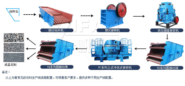 花崗巖破碎生產(chǎn)線配置方案簡(jiǎn)易流程圖: