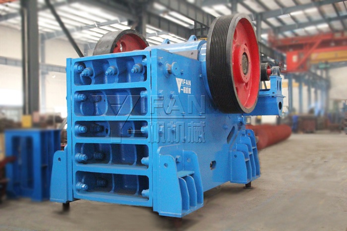 工作原理:電動機驅(qū)動皮帶和皮帶輪,通過偏心軸使動鄂前后上下擺動,當動鄂推動動鄂板向定鄂板運動時,物料被壓碎或劈碎。當動鄂和動鄂板在偏心軸、彈簧的作用下后退時,先前已被壓碎或劈碎的物料從鄂板的下部排料口排出。隨著電動機連續(xù)轉動而破碎機動鄂作周期性地壓碎和排泄物料,實現(xiàn)批量生產(chǎn)。