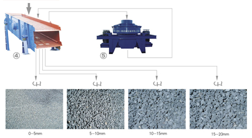 In the highway asphalt concrete road surface, both SMA and Super pave technology assign high requirement of the shape and rank of aggregate. Especially to the content of needle plate type in the basalt, the former impact crusher processing chart cannot meet the requirement any longer. Therefore, our company put up the newest crushing and screening processing chart-VI series Vertical Shaft Impact Crusher to meet the need. The high-quality aggregate produced by this production line was widely used in SMA road surface of Shenyang-dalian highway. |